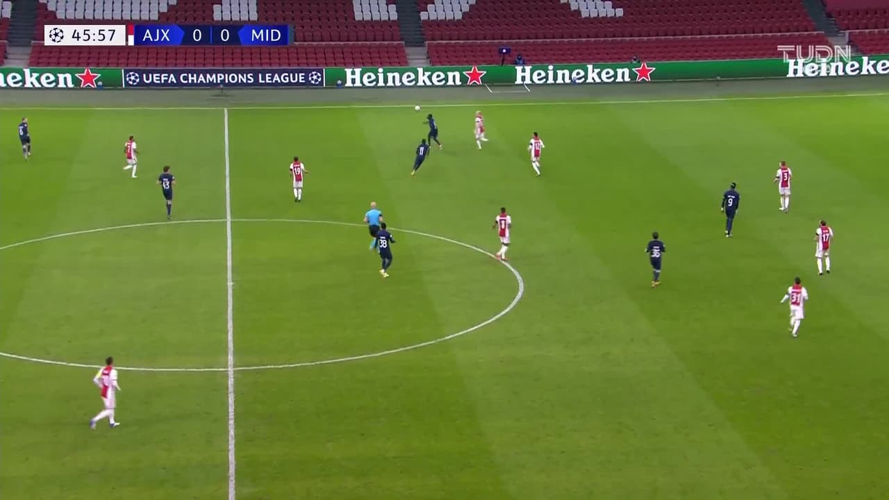 ¡Gol! Ajax 1| FC Midtjylland 0. Ryan Gravenberch (Ajax) Disparo con la derecha desde fuera del área por arriba. Asistencia de Dusan Tadic.