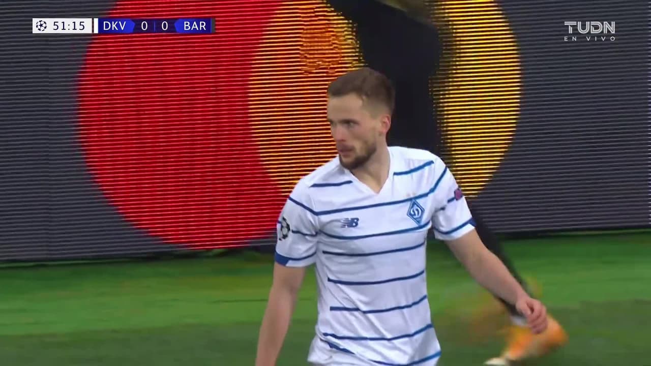 ¡Gol! Dynamo Kyiv 0| FC Barcelona 1. Sergiño Dest (FC Barcelona) Disparo con la derecha sin ángulo desde la derecha disparo rastrero| junto al palo izquierdo. Asistencia de Martin Braithwaite.