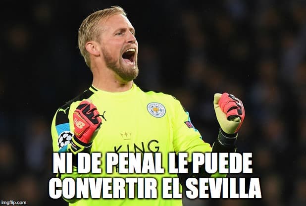 Una jugada brava de Schmeichel y Vittolo acabaría por ser marcado como penal para el Sevilla, N’Zonzi sería el encargado de cobrar el penal, pero el arquero danés se vestiría de héroe con una atajada providencial.