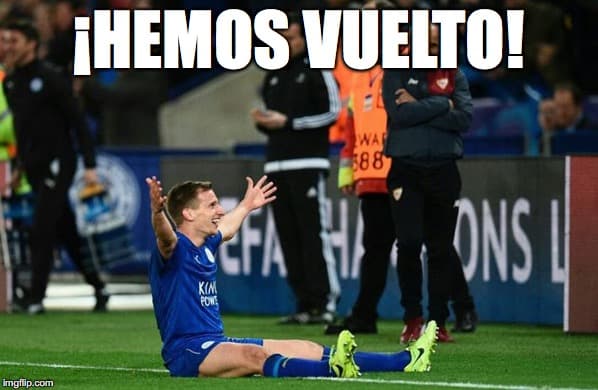 Wes Morgan comenzaría a darle forma a la remontada gracias a un gol lleno de suerte, ya que el remate del zaguero fue con la rodilla y no muy planeado que digamos, al final la bola terminó entrando pegada al poste del arco del Sevilla.