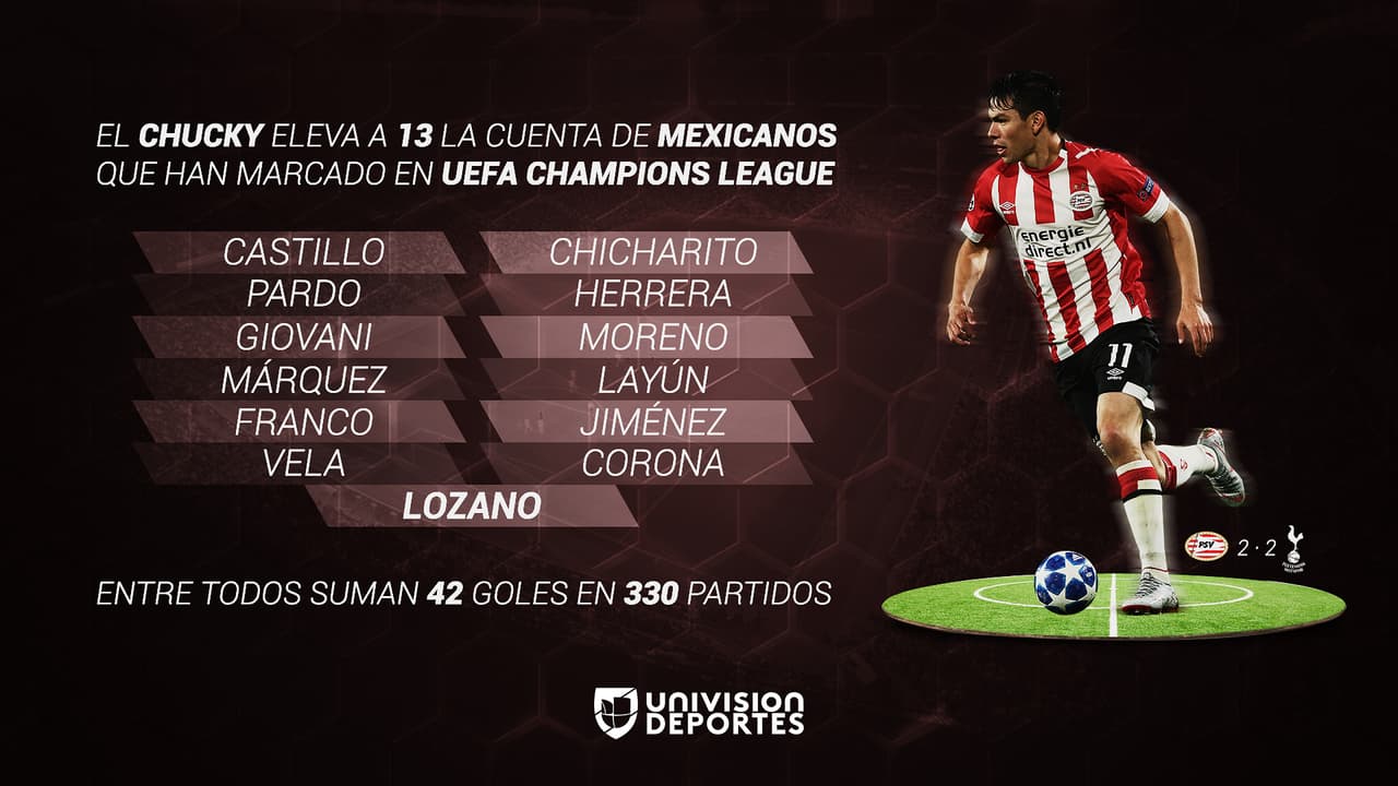 Además, Lozano se convirtió en el mexicano número 13 en anotar en el máximo torneo a nivel de clubes según informó @2010MisterChip.