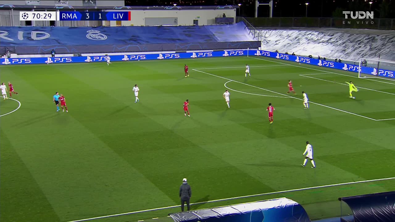 Tiro atajado junto al lado derecho de la portería. Karim Benzema (Real Madrid) Disparo con la derecha desde el lado derecho dentro del área. Asistencia de Vinícius Júnior.