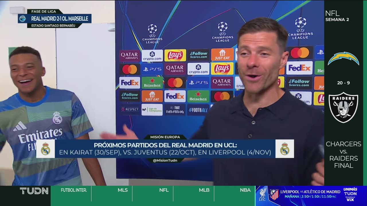 Xabi Alonso se pone nervioso con Kylian Mbappé en plena entrevista
