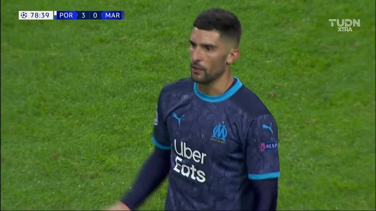 Tarjeta amarilla. El árbitro amonesta a Álvaro González Soberón de Marseille.
