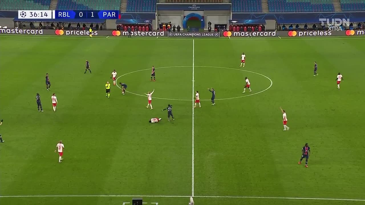 Idrissa Gueye (Paris Saint-Germain) ha sido amonestado con tarjeta amarilla por juego peligroso.