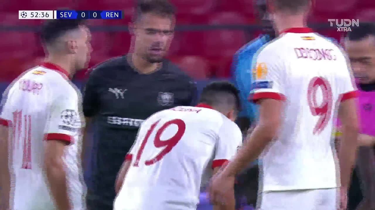 Marcos Acuña (Sevilla) ha sido amonestado con tarjeta amarilla por juego peligroso.