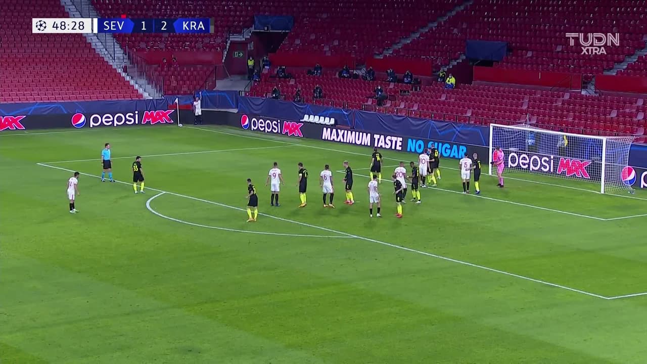 Óscar Rodríguez (Sevilla) ha sido amonestado con tarjeta amarilla por juego peligroso.