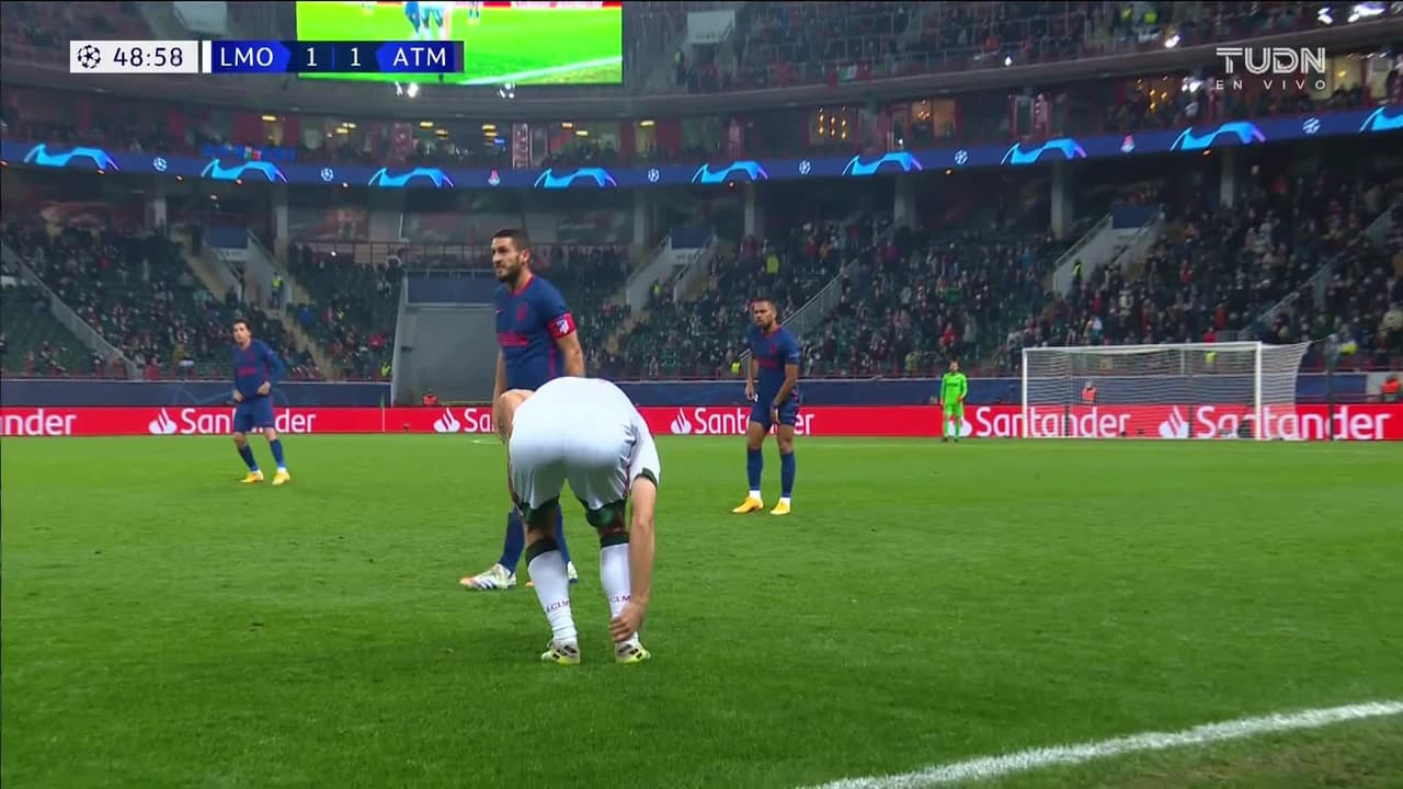 Renan Lodi (Atlético de Madrid) ha sido amonestado con tarjeta amarilla por juego peligroso.
