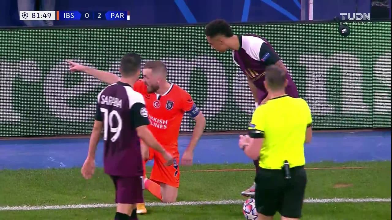 Tarjeta amarilla. El árbitro amonesta a Thilo Kehrer de Paris Saint-Germain