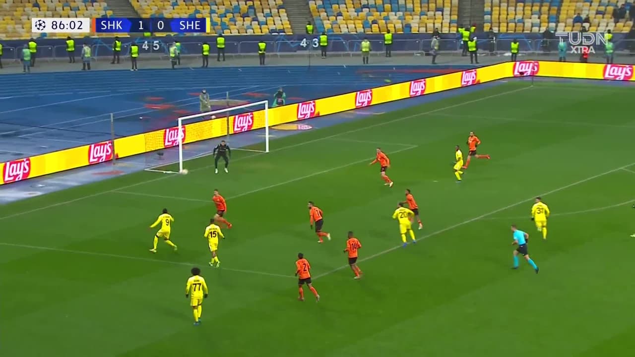 Tiro atajado por abajo a la izquierda. Adama Traoré (Sheriff Tiraspol) zurdazo desde el lado izquierdo dentro del área. Asistencia de Boban Nikolov.