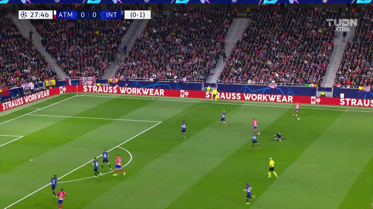Tiro atajado junto al lado derecho de la portería. Álvaro Morata (Atlético de Madrid) disparo de cabeza desde el centro del área. Asistencia de Mario Hermoso con un centro al área.