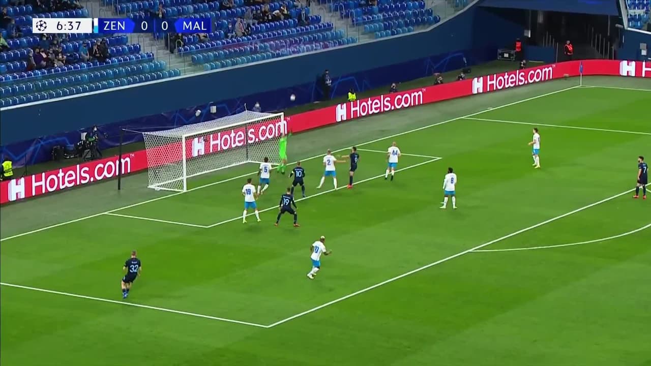 Remate parado. Anders Christiansen (Malmoe) remate de cabeza desde el centro del área.