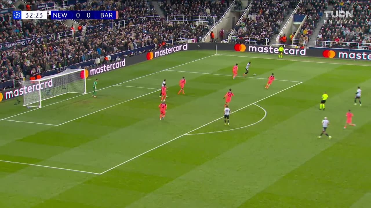Tiro atajado. Anthony Elanga (Newcastle United) zurdazo desde fuera del área.