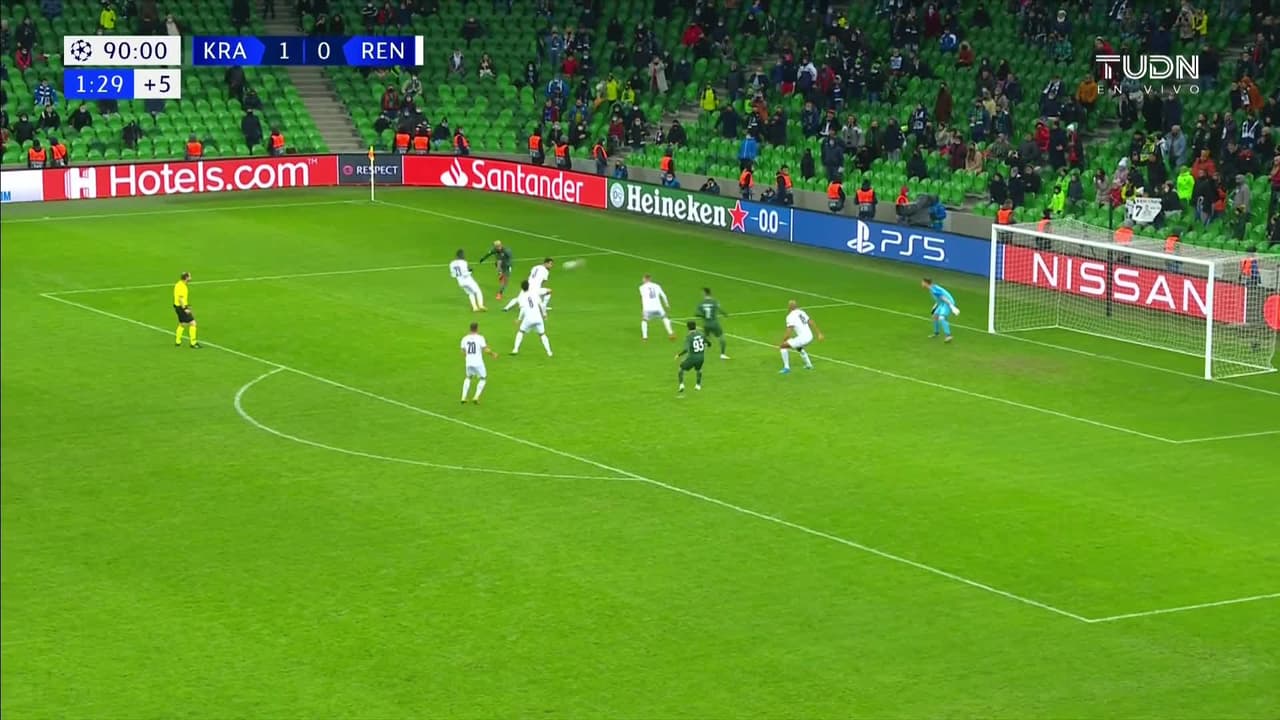 Tiro atajado junto al lado derecho de la portería. Ari (FK Krasnodar) Disparo con la derecha desde el lado izquierdo dentro del área. Asistencia de Rémy Cabella.