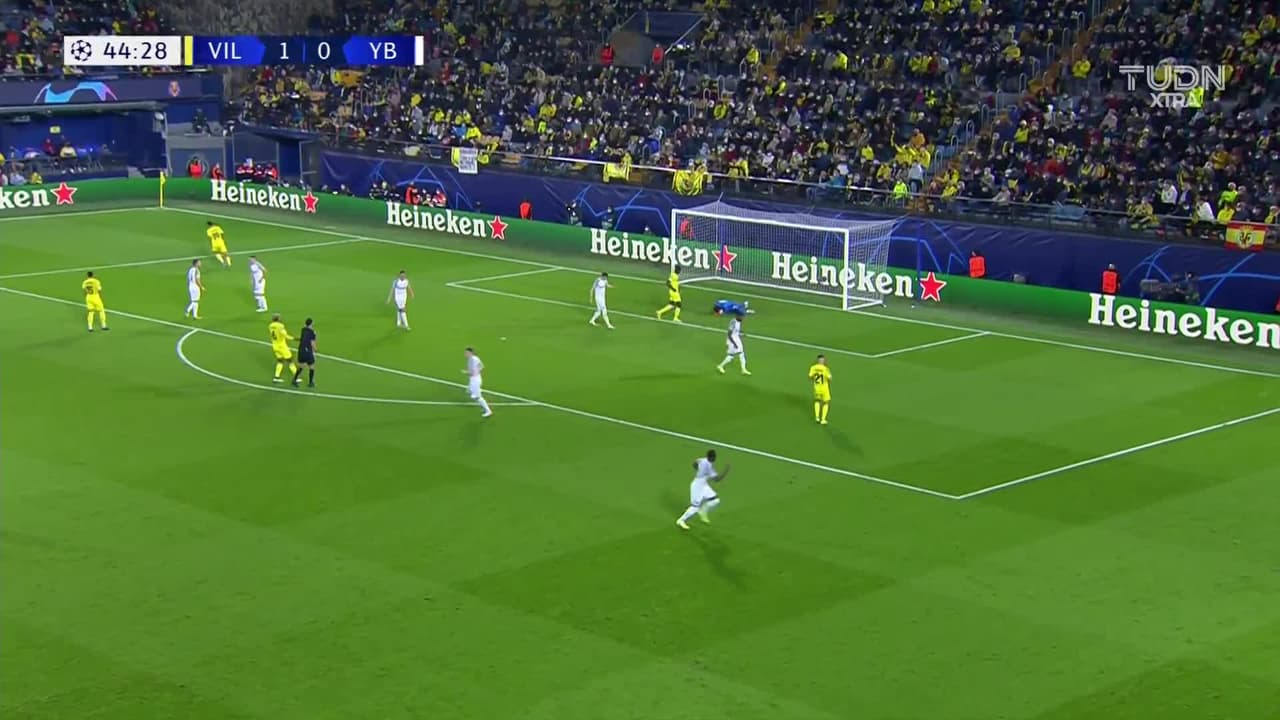 Tiro atajado. Arnaut Danjuma (Villarreal) Disparo con la derecha desde fuera del área.