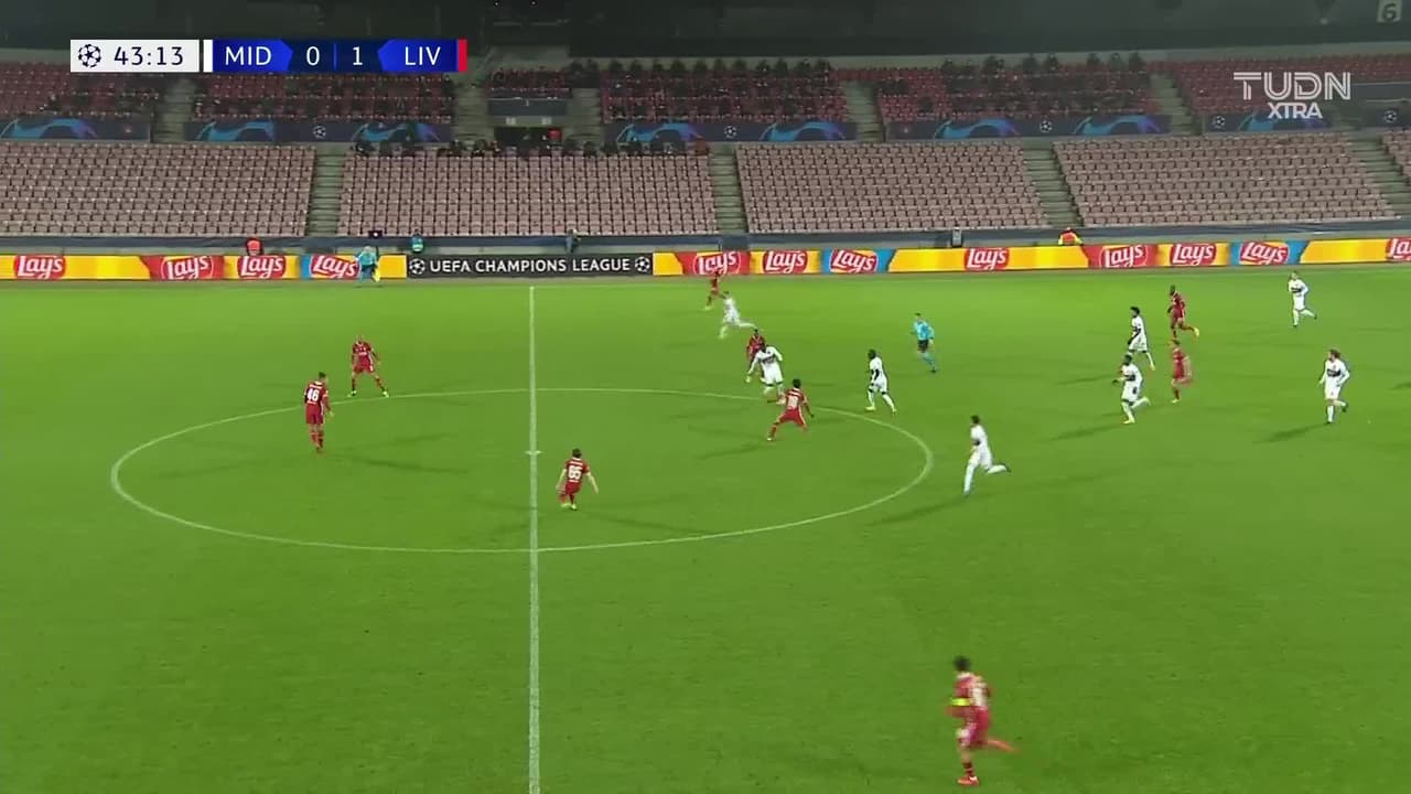 Tiro atajado por abajo a la izquierda. Awer Mabil (FC Midtjylland) Disparo con la derecha sin ángulo desde la izquierda. Asistencia de Dion Cools con un centro al área.