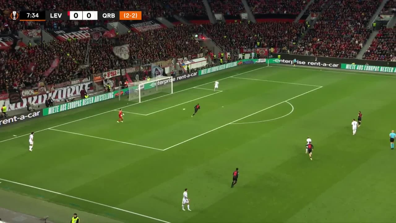 Tiro atajado raso al centro del arco. Borja Iglesias (Bayer 04 Leverkusen) zurdazo desde el lado derecho dentro del área. Asistencia de Jonas Hofmann.