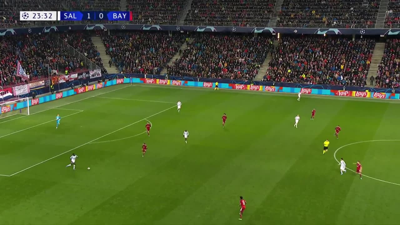 Tiro atajado. Brenden Aaronson (FC Red Bull Salzburg) zurdazo desde el centro del área.