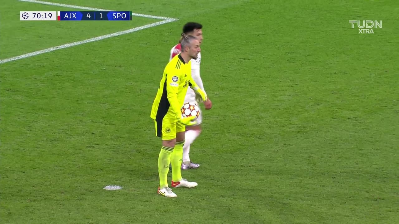 Tiro atajado. Bruno Tabata (Sporting Lisbon) zurdazo desde fuera del área.