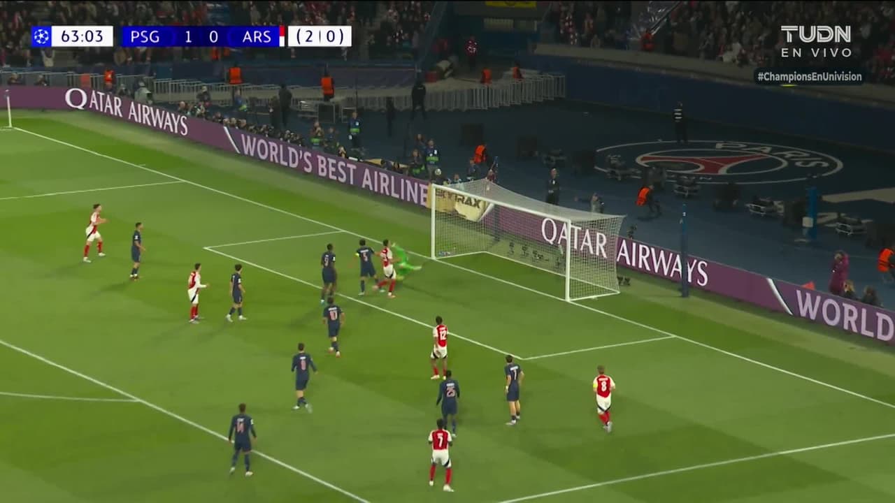 Tiro atajado al ángulo superior derecho. Bukayo Saka (Arsenal) zurdazo desde el lado derecho dentro del área. Asistencia de Jurriën Timber.