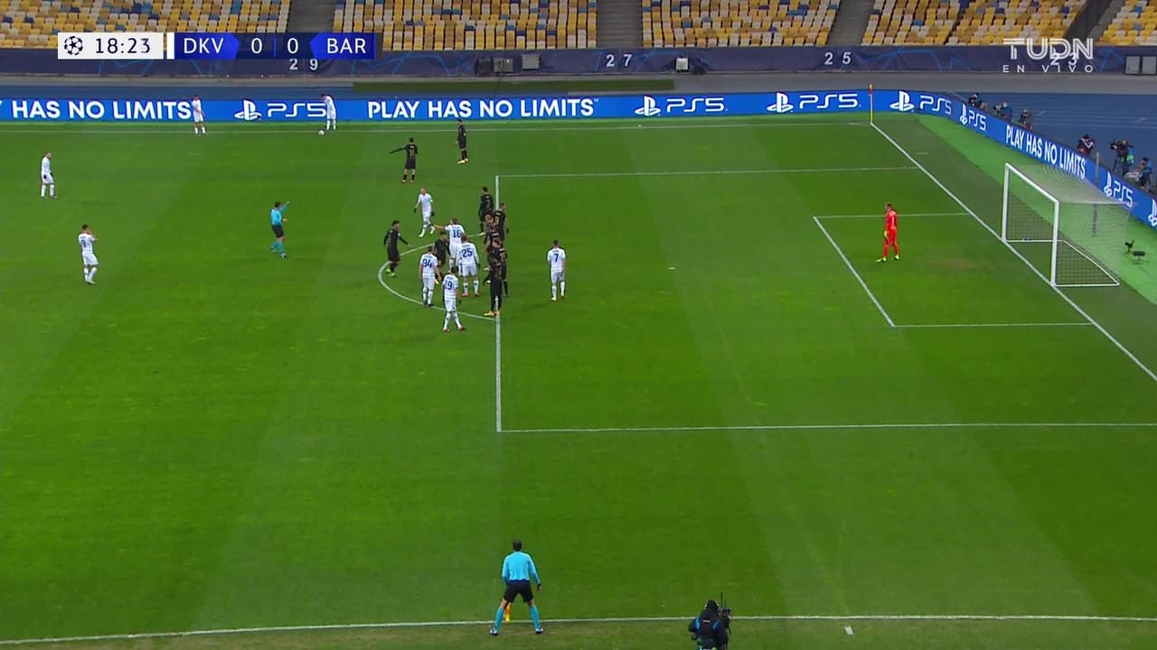 Tiro atajado. Carlos de Pena (Dynamo Kyiv) zurdazo desde el lado izquierdo dentro del área.
