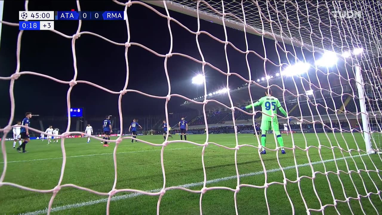 Tiro atajado. Casemiro (Real Madrid) disparo de cabeza desde el centro del área.