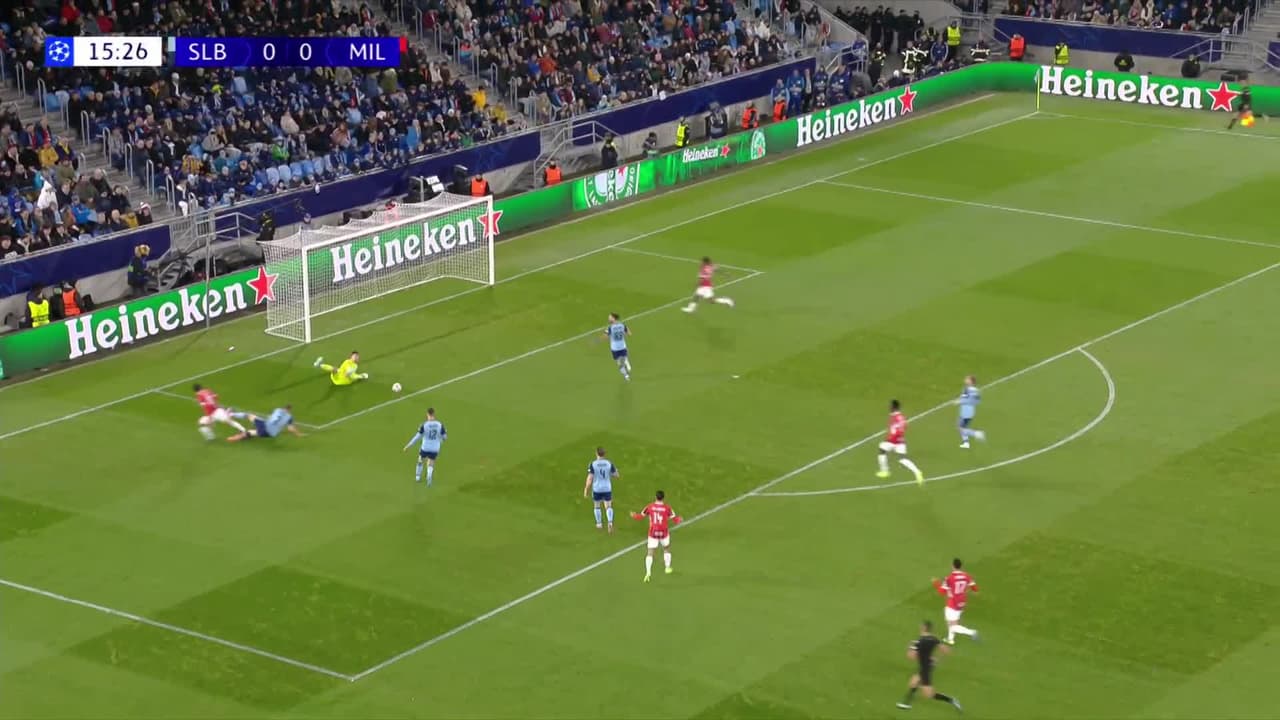 Tiro atajado. Christian Pulisic (Milan) zurdazo desde el lado izquierdo dentro del área.