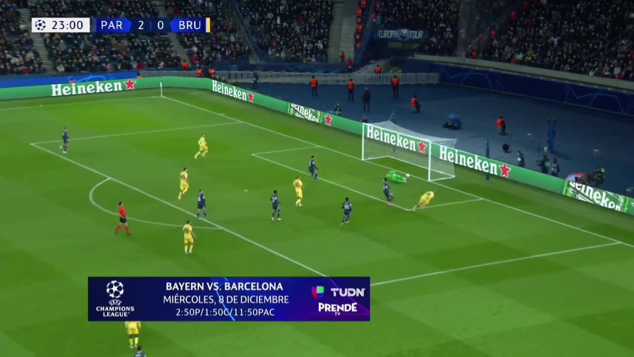 Tiro atajado. Cisse Sandra (Club Brugge) Disparo con la derecha sin ángulo desde la derecha.