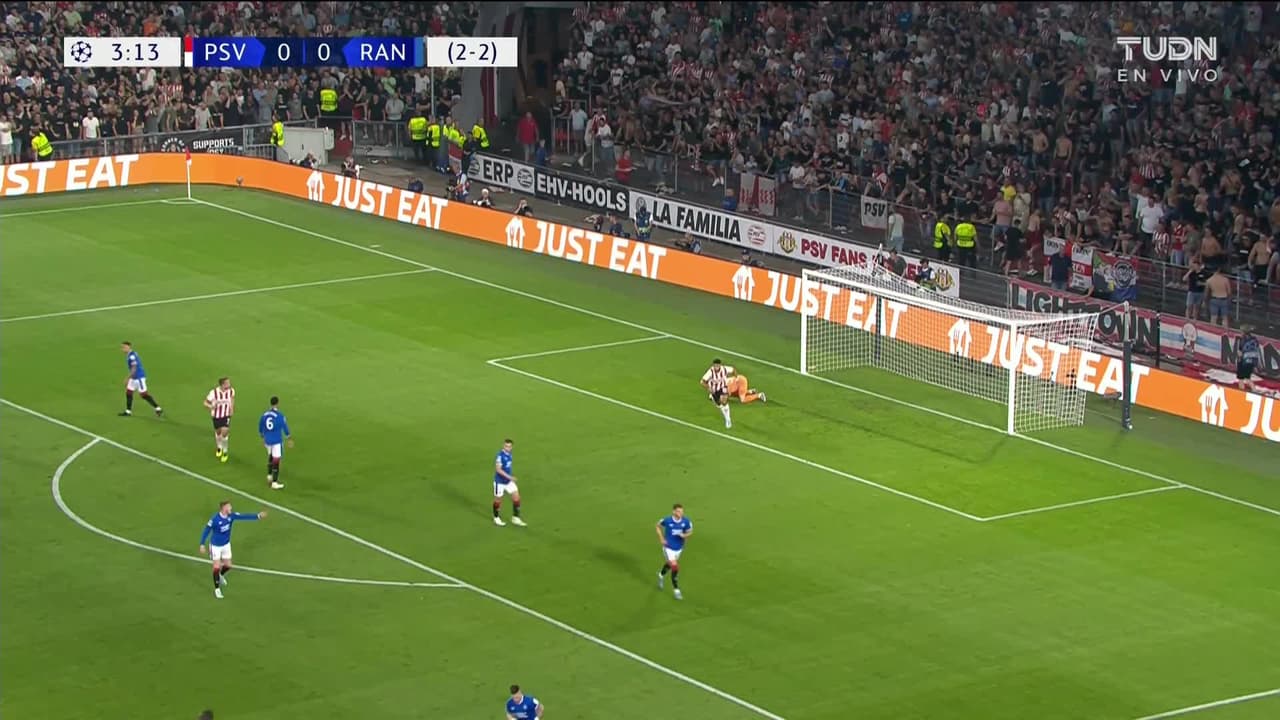 Tiro atajado por abajo a la izquierda. Cody Gakpo (PSV Eindhoven) Disparo con la derecha desde fuera del área. Asistencia de Philipp Max.