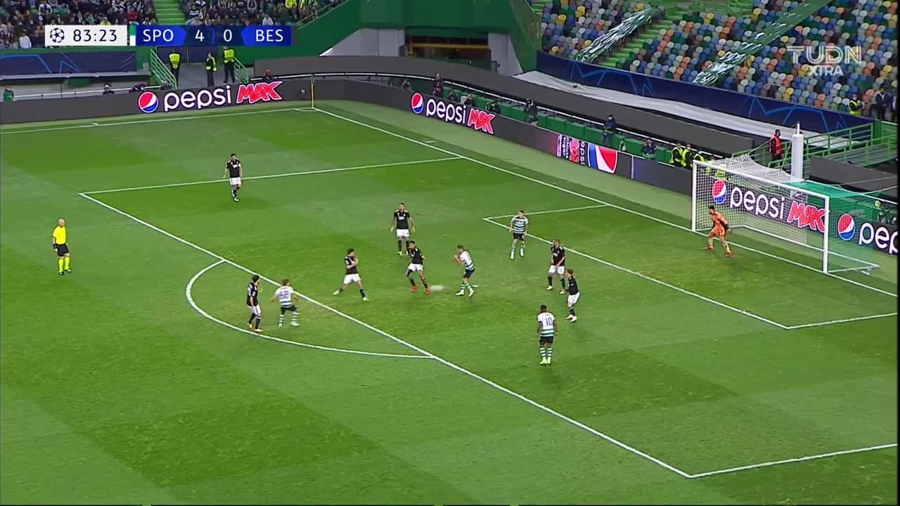 Tiro atajado. Daniel Bragança (Sporting Lisbon) zurdazo desde fuera del área.