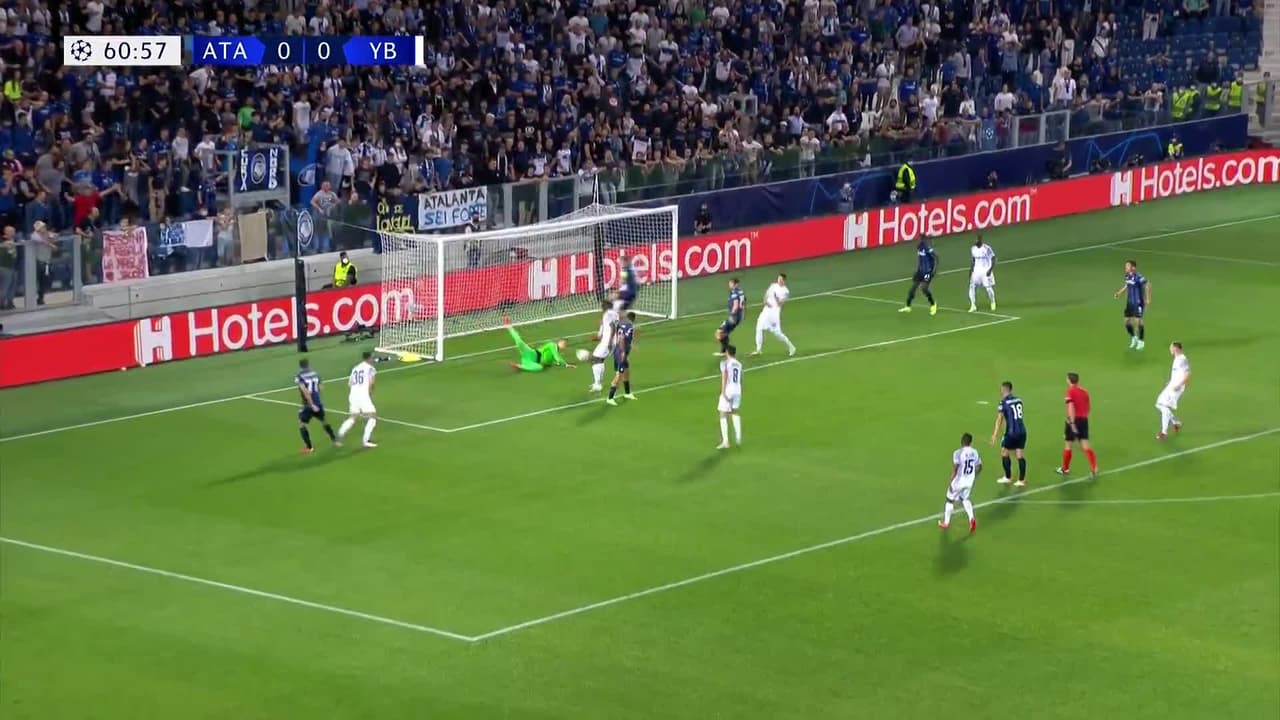 Remate parado bajo palos a rás de suelo. Davide Zappacosta (Atalanta) remate con la derecha escorado desde la izquierda. Asistencia de Duván Zapata con un centro al área.