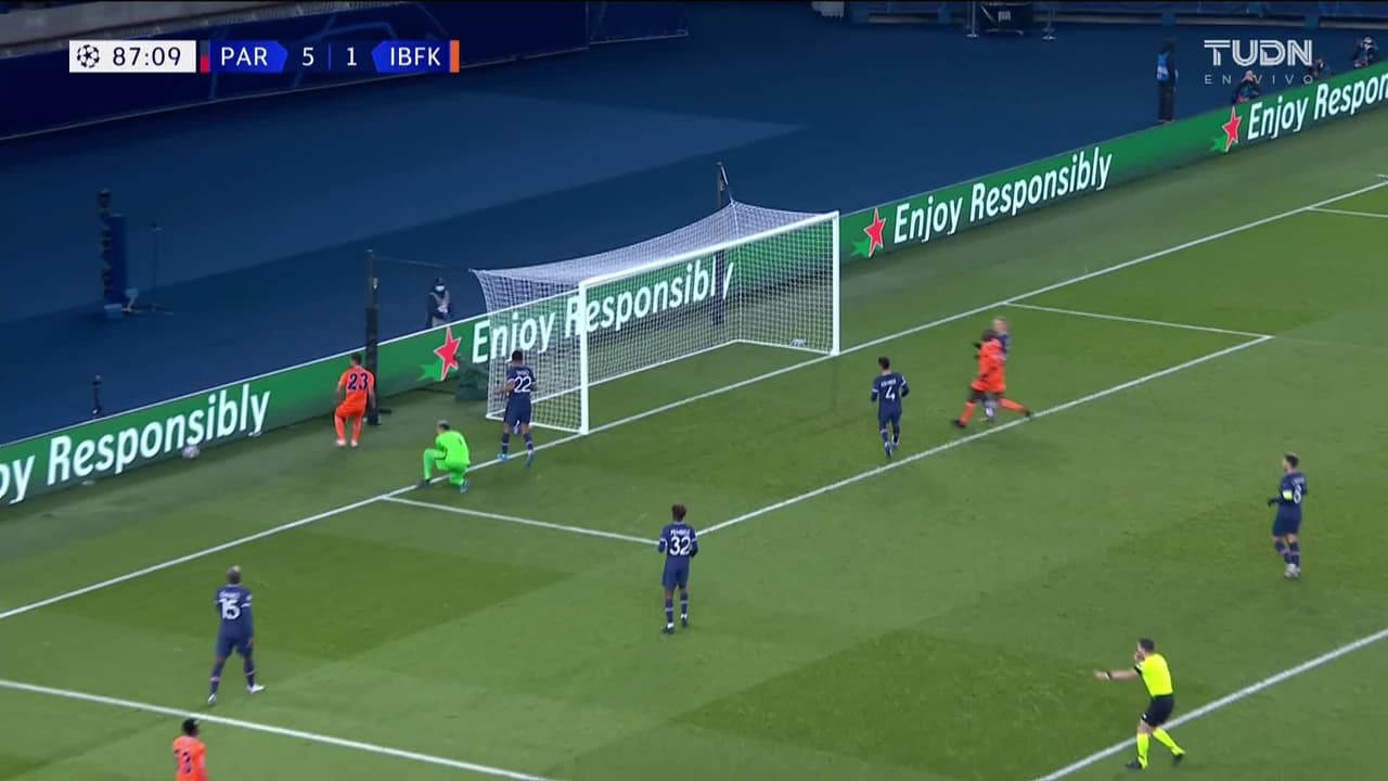 Tiro atajado por abajo a la izquierda. Deniz Türüç (Istanbul Basaksehir) zurdazo a quemarropa desde el lado izquierdo. Asistencia de Boli Bolingoli-Mbombo.