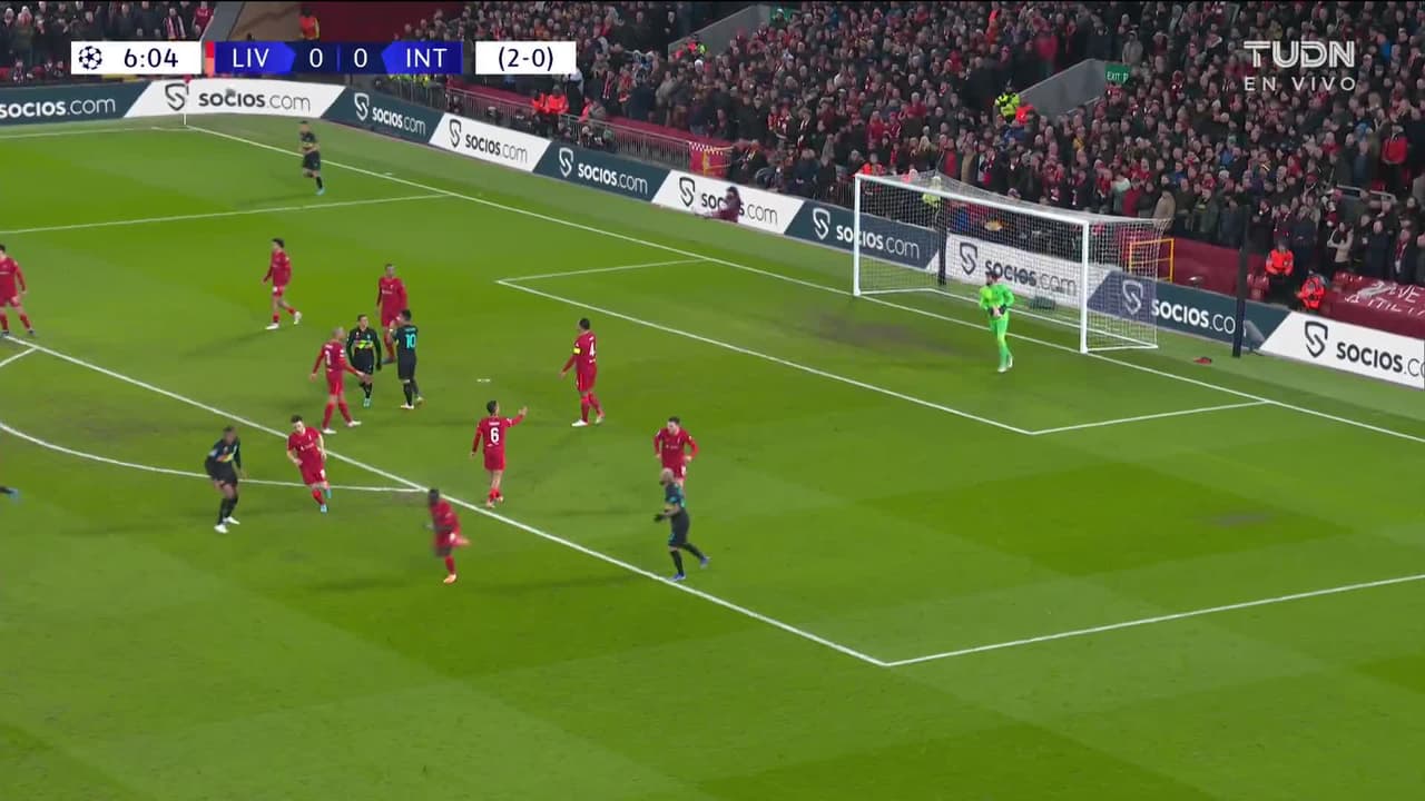 Tiro atajado junto al lado derecho de la portería. Denzel Dumfries (Internazionale) Disparo con la derecha desde fuera del área. Asistencia de Arturo Vidal con un pase de cabeza.