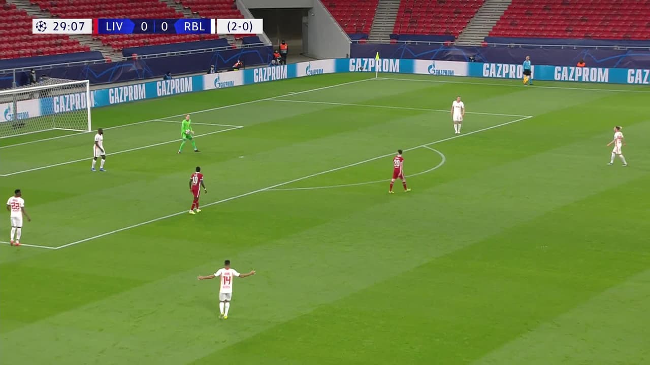 Tiro atajado raso al centro del arco. Diogo Jota (Liverpool) disparo de cabeza a quemarropa desde el lado izquierdo. Asistencia de Andrew Robertson con un centro al área.