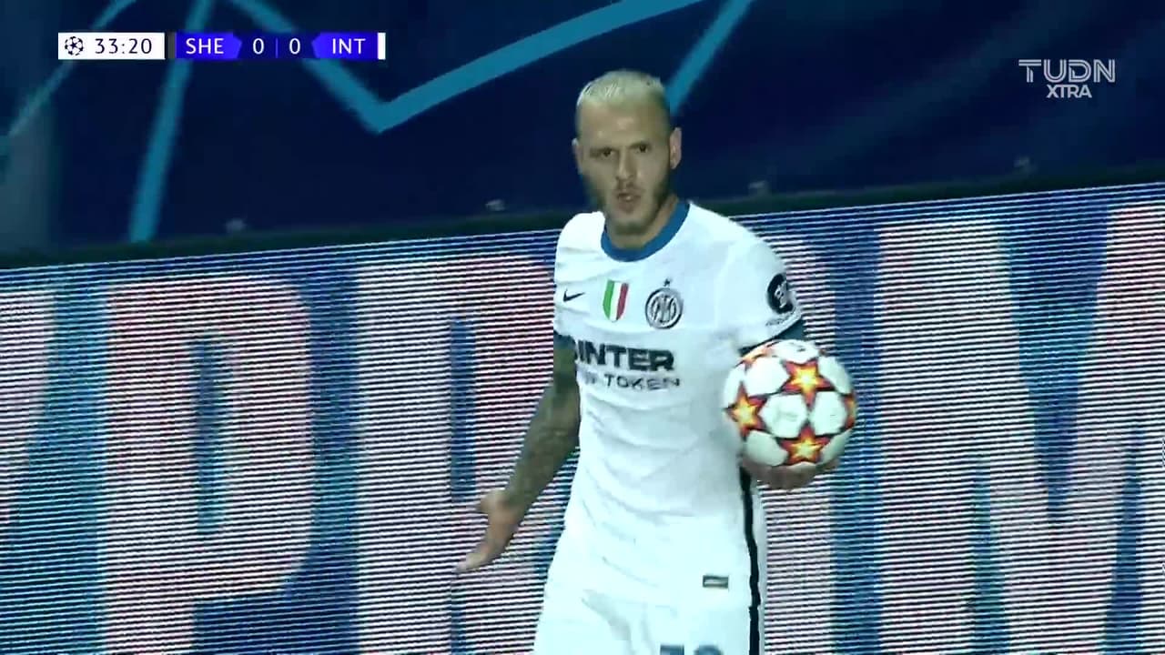 Tiro atajado raso al centro del arco. Edin Dzeko (Internazionale) Disparo con la derecha desde el centro del área. Asistencia de Arturo Vidal con un centro al área.