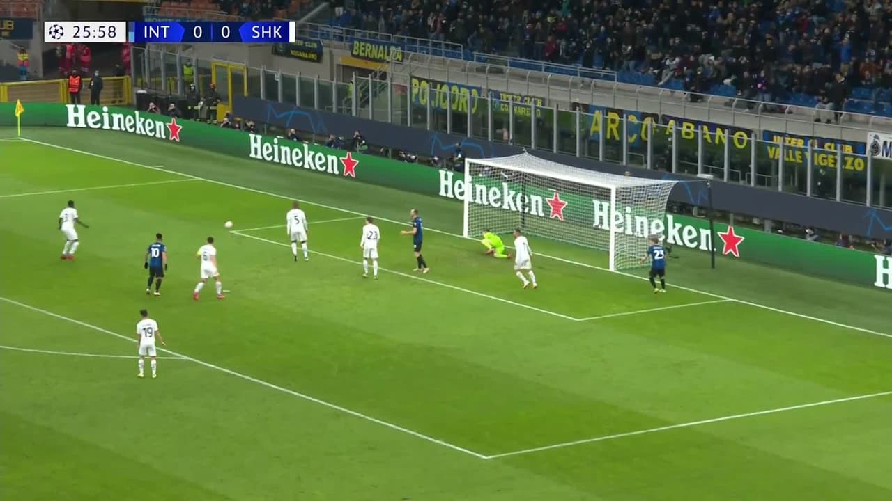 Tiro atajado por abajo a la izquierda. Edin Dzeko (Internazionale) disparo de cabeza desde el centro del área. Asistencia de Ivan Perisic con un centro al área.