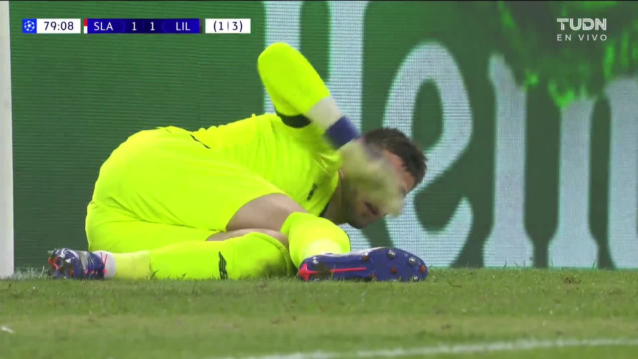Tiro atajado. El Hadji Diouf (Slavia Prague) disparo de cabeza desde el centro del área.