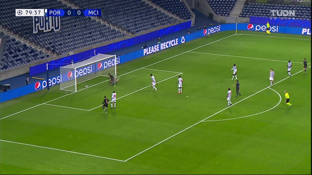 Tiro atajado raso al centro del arco. Eric García (Manchester City) Disparo con la derecha desde muy cerca. Asistencia de Rúben Dias.