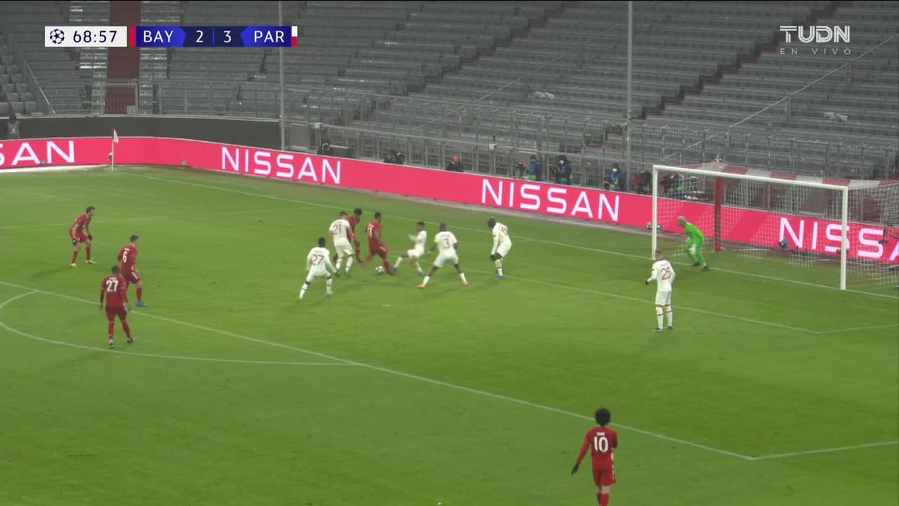 Tiro atajado por abajo a la izquierda. Eric Maxim Choupo-Moting (FC Bayern München) zurdazo desde el centro del área.