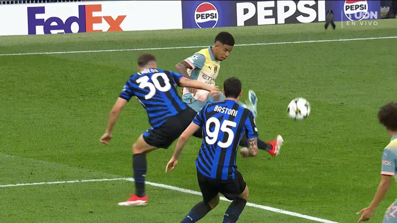 Tiro atajado Por arriba en el centro del arco. Erling Haaland (Manchester City) disparo de cabeza desde el centro del área. Asistencia de Savinho con un centro al área.
