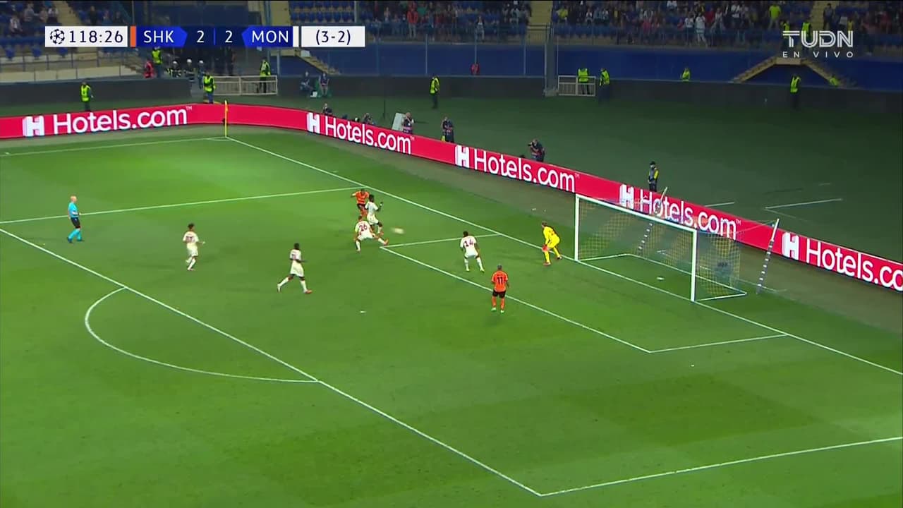 Tiro atajado raso al centro del arco. Fernando (Shakhtar Donetsk) Disparo con la derecha desde el lado izquierdo dentro del área. Asistencia de Marlon Santos pase largo.