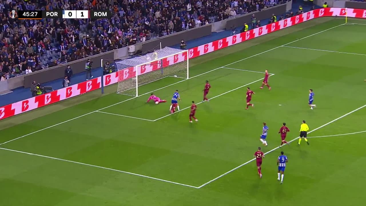 Tiro atajado por abajo a la izquierda. Francisco Moura (FC Porto) zurdazo a quemarropa desde el lado izquierdo.