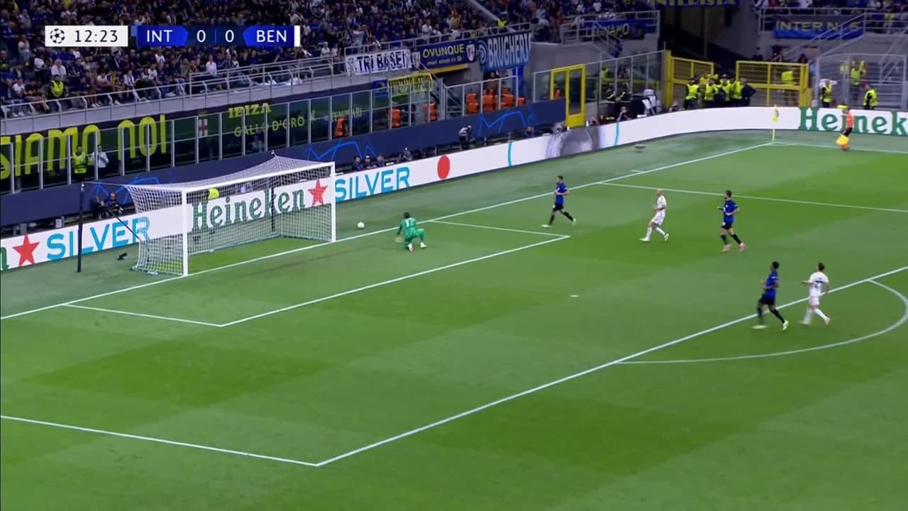 Tiro atajado junto al lado derecho de la portería. Fredrik Aursnes (Benfica) Disparo con la derecha desde el lado derecho dentro del área. Asistencia de Alexander Bah.