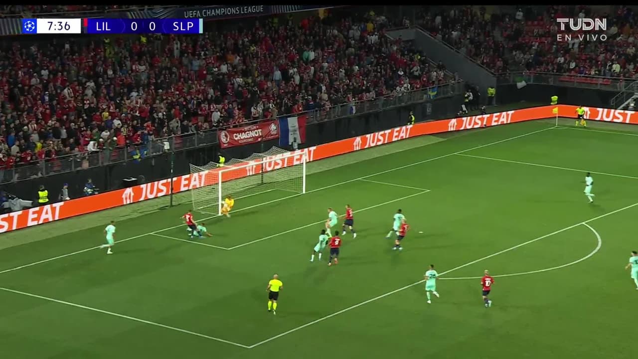 Tiro atajado por abajo a la izquierda. Gabriel Gudmundsson (Lille) zurdazo sin ángulo desde la izquierda. Asistencia de Alexsandro Ribeiro pase largo.