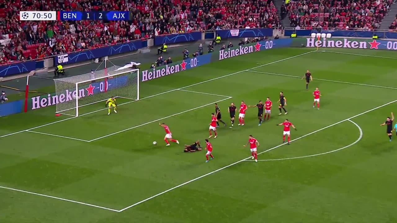 Tiro atajado al ángulo superior derecho. Gonçalo Ramos (Benfica) zurdazo desde fuera del área. Asistencia de Rafa.