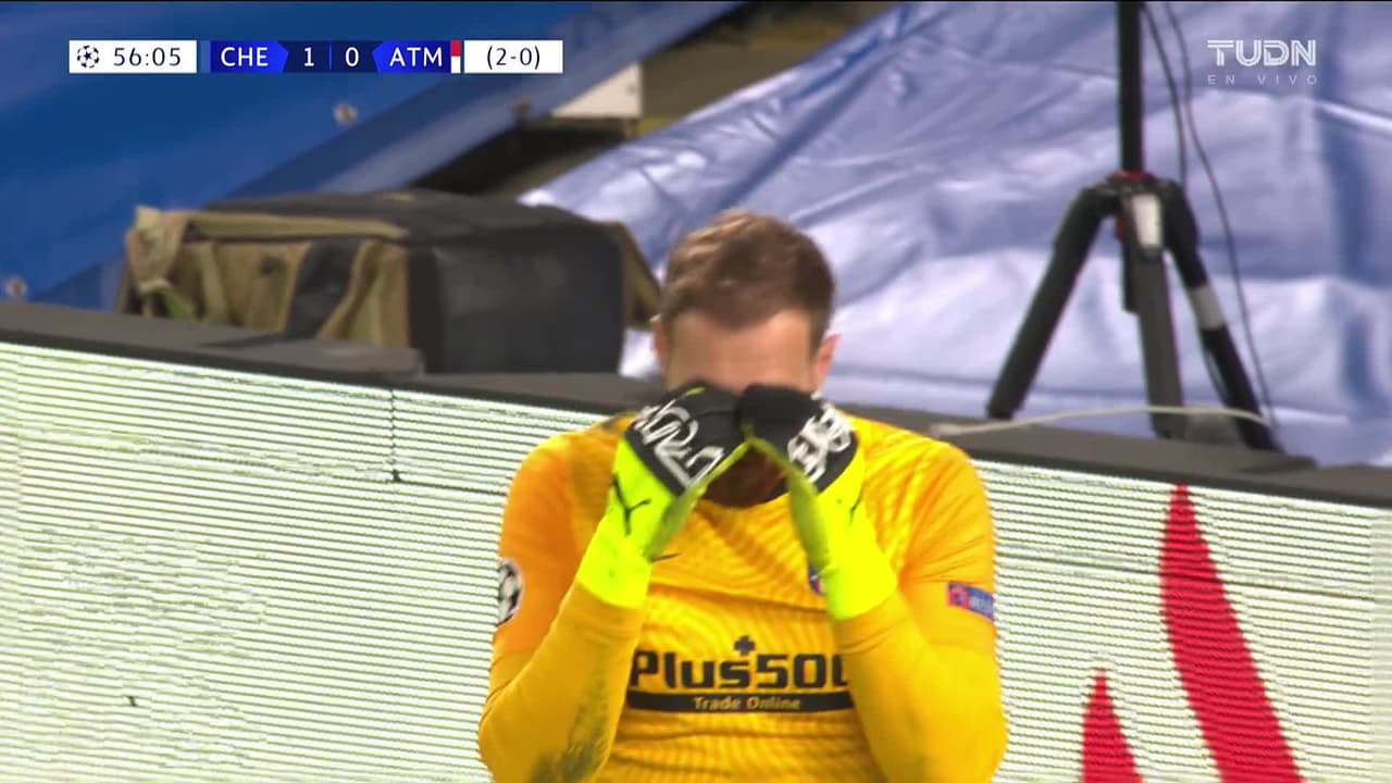 Tiro atajado. Hakim Ziyech (Chelsea) zurdazo desde fuera del área.