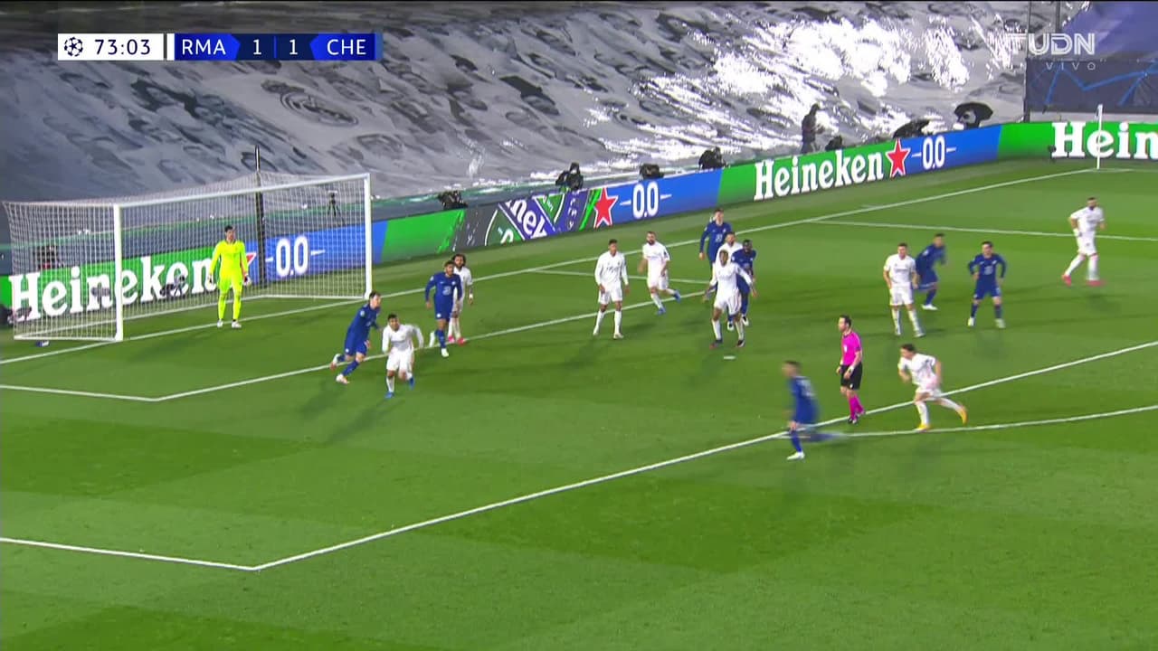 Tiro atajado al ángulo superior derecho. Hakim Ziyech (Chelsea) zurdazo desde fuera del área.