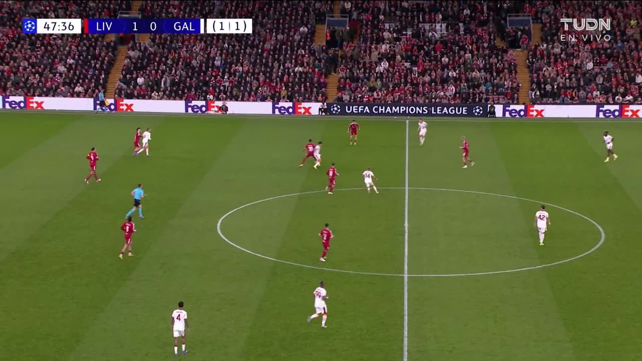 Tiro atajado Por arriba en el centro del arco. Hugo Ekitiké (Liverpool) zurdazo sin ángulo desde la izquierda. Asistencia de Florian Wirtz.