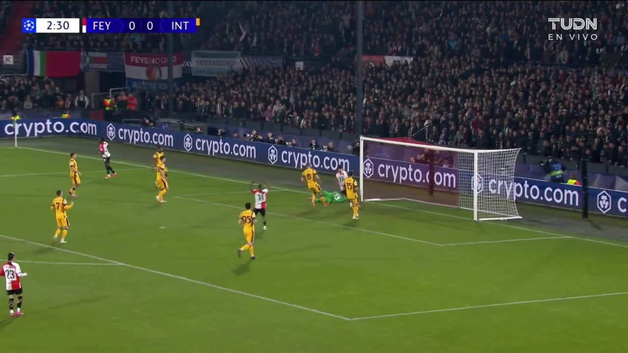 Tiro atajado por abajo a la izquierda. Ibrahim Osman (Feyenoord) zurdazo desde el lado izquierdo dentro del área. Asistencia de Jakub Moder pase largo.