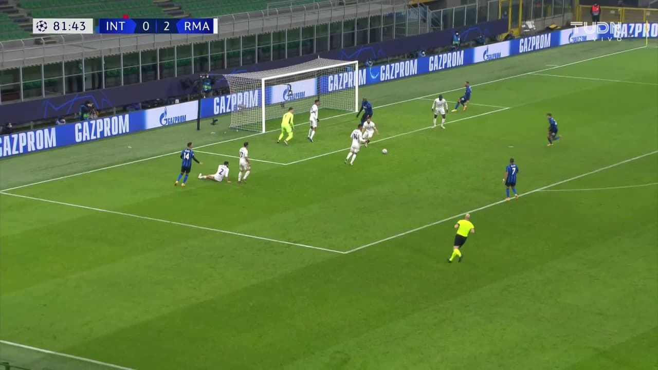Tiro atajado raso al centro del arco. Ivan Perisic (Internazionale) zurdazo desde el lado izquierdo dentro del área. Asistencia de Alexis Sánchez.